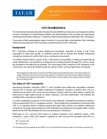 - Promoting the use of a CPD framework to provide an example structure and guidance to help professional accountants identify, undertake, and record relevant development; and