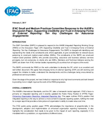 IFAC SMP Committee Response to IAASB’s Discussion Paper, Supporting Credibility & Trust in Emerging Forms of External Reporting