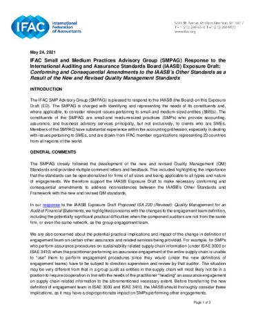 IFAC SMP Response to the IAASB QM Conforming Amendments Exposure Draft