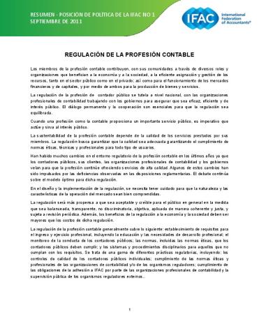 Resumen de Posición De Política De La IFAC No 1 Regulación de la Profesión Contable