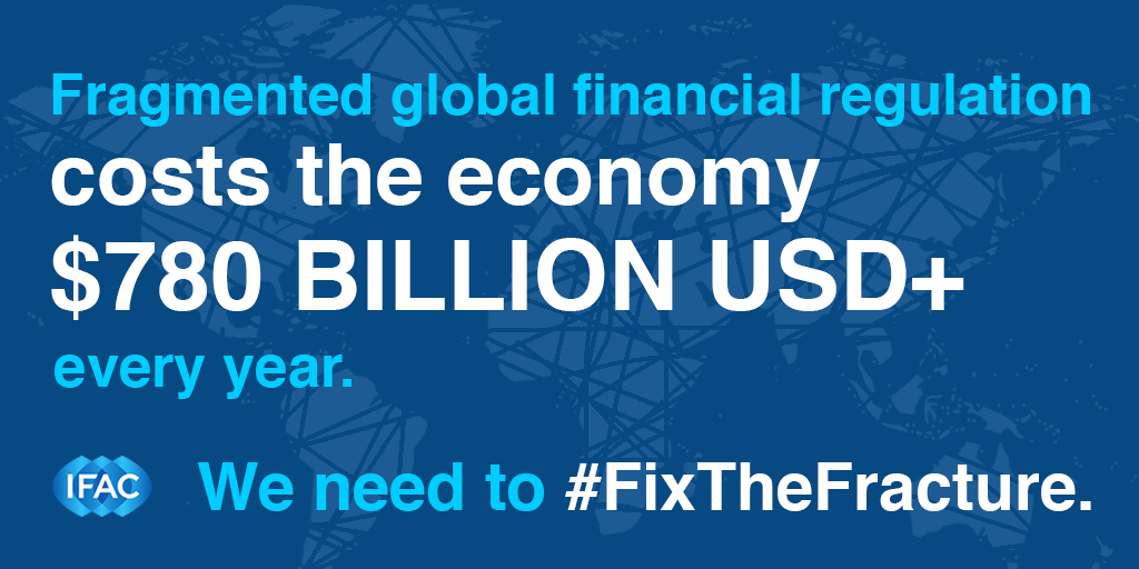 IFAC (International Federation of Accountants) and Business at the OECD (BIAC) surveyed over 250 regulatory and compliance leaders from major global financial institutions to estimate that a piecemeal approach to financial sector regulation costs the global economy $780 billion USD a year.
