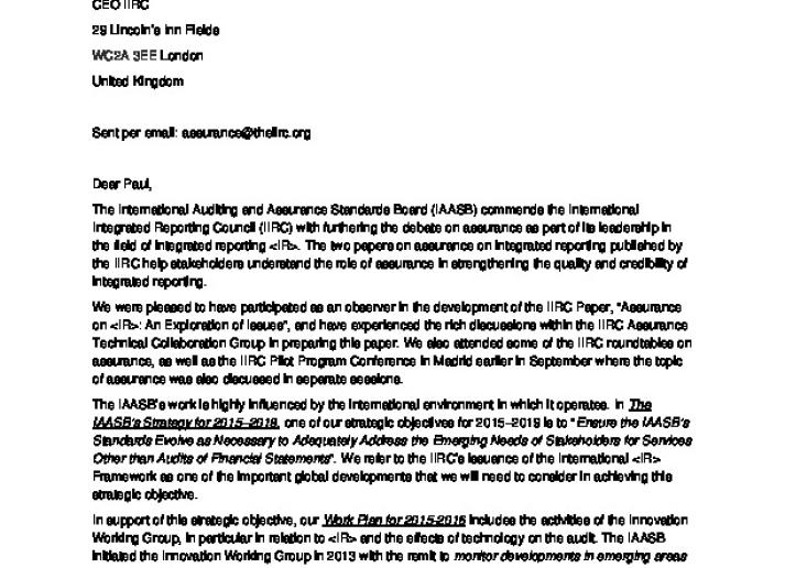 IAASB Response to the IIRC's Discussion Papers “Assurance on Integrated Reporting”