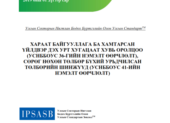 ХАРААТ БАЙГУУЛЛАГА БА ХАМТАРСАН ҮЙЛДВЭР ДЭХ УРТ ХУГАЦААТ ХУВЬ ОРОЛЦОО (УСНББОУС 36-ГИЙН НЭМЭЛТ ӨӨРЧЛӨЛТ), СӨРӨГ НӨХӨН ТӨЛБӨР БҮХИЙ УРЬДЧИЛСАН ТӨЛБӨРИЙН ШИНЖҮҮД (УСНББОУС 41-ИЙН НЭМЭЛТ ӨӨРЧЛӨЛТ)