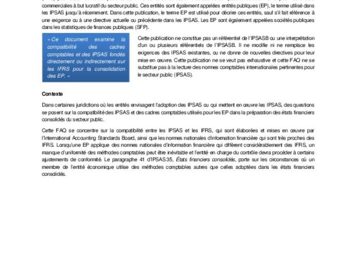 Foire aux Questions du Personnel États financiers consolidés selon les normes IPSAS et entreprises publiques