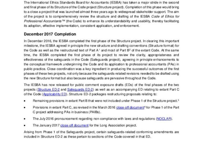 Close-Off: Changes to Part C of the Code Addressing Preparation and Presentation of Information and Pressure to Breach the Fundamental Principles Ethics International Standards January 24, 2017 • ethicsboard.org