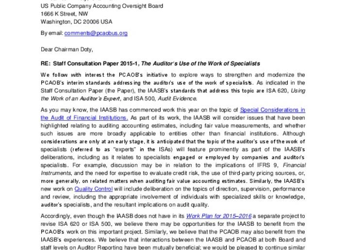 IAASB Comments on PCAOB Staff Consultation Paper on "The Auditor's Use of the Work of Specialists" Audit & Assurance International Standards August 3, 2015 • iaasb.org