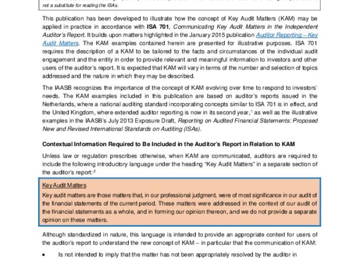 Auditor Reporting—Illustrative Key Audit Matters Audit & Assurance Apr 22, 2015 • International Auditing and As…