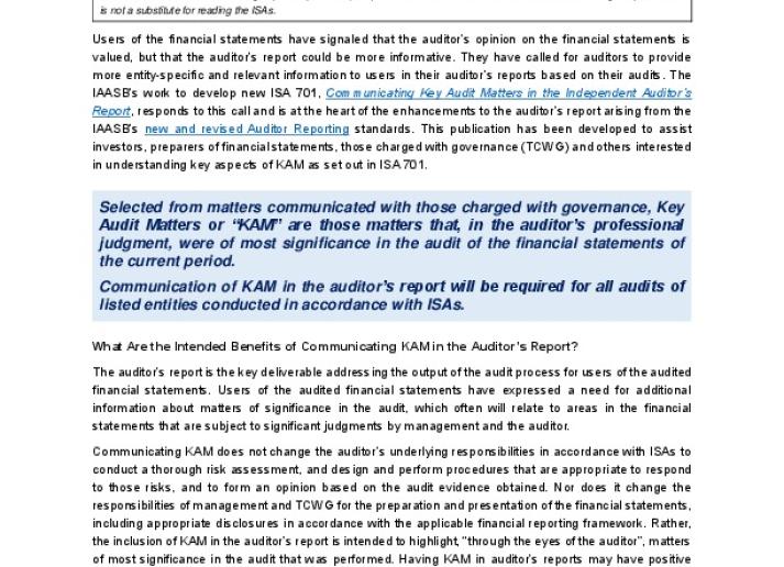 Auditor Reporting – Key Audit Matters Audit & Assurance International Standards January 30, 2015 • iaasb.org