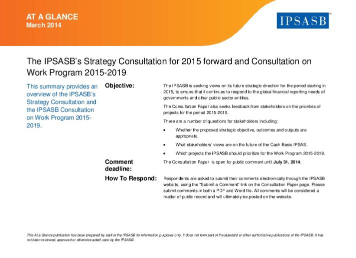 At-a-Glance: IPSASB Strategy Consultation 2015 Forward Public Sector International Standards March 31, 2014 • ipsasb.org