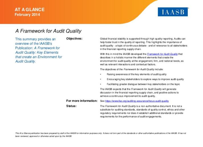 A Framework for Audit Quality: Key Elements that Create an Environment for Audit Quality Audit & Assurance Feb 18, 2014 • International Auditing and As…