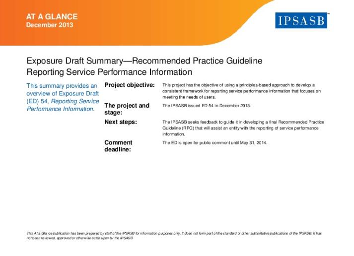 At a Glance: Exposure Draft (ED) 54, Reporting Service Performance Information Public Sector International Standards December 20, 2013 • ipsasb.org