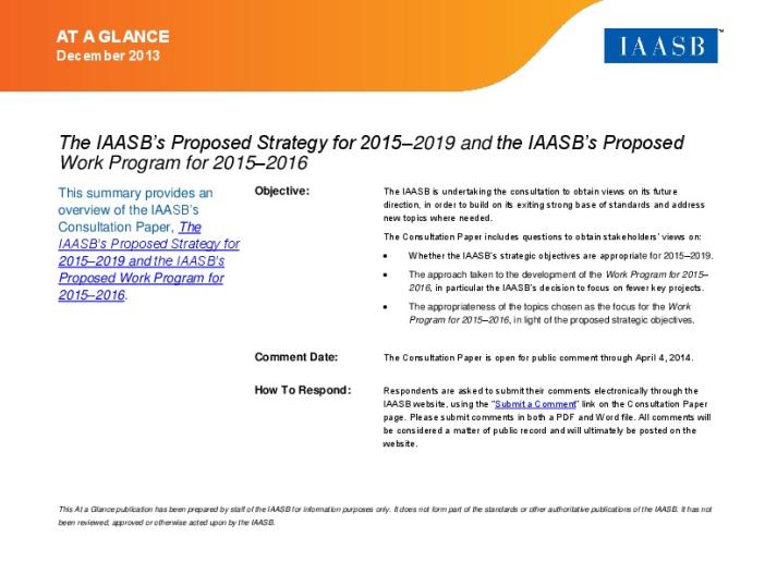 At a Glance: The IAASB’s Proposed Strategy for 2015–2019 and Proposed Work Program for 2015–2016 International Standards December 18, 2013 • iaasb.org