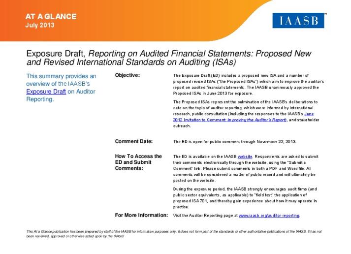 At a Glance: Exposure Draft, Reporting on Audited Financial Statements: Proposed New and Revised International Standards on Auditing Audit & Assurance International Standards July 25, 2013 • iaasb.org
