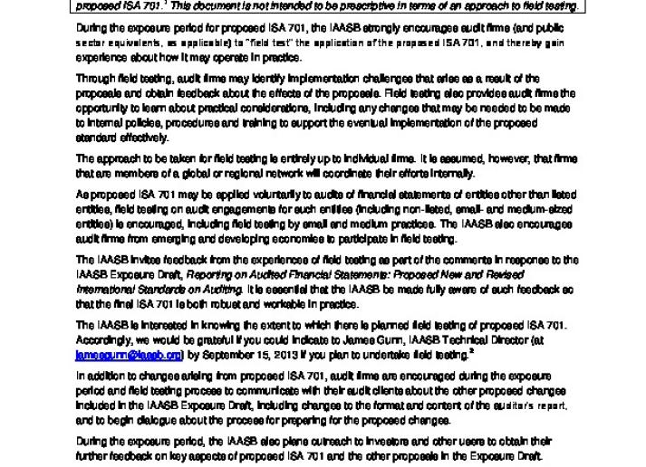 Guidance to Assist in Field Testing of Proposed International Standard on Auditing (ISA) 701, Communicating Key Audit Matters in the Independent Auditor’s Report Audit & Assurance International Standards July 25, 2013 • iaasb.org