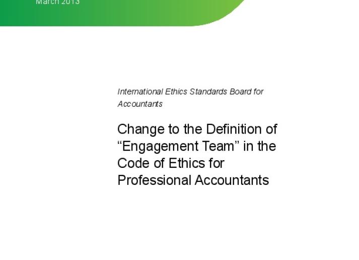 Change to the Definition of “Engagement Team” in the Code of Ethics for Professional Accountants Ethics International Standards March 19, 2013 • ethicsboard.org