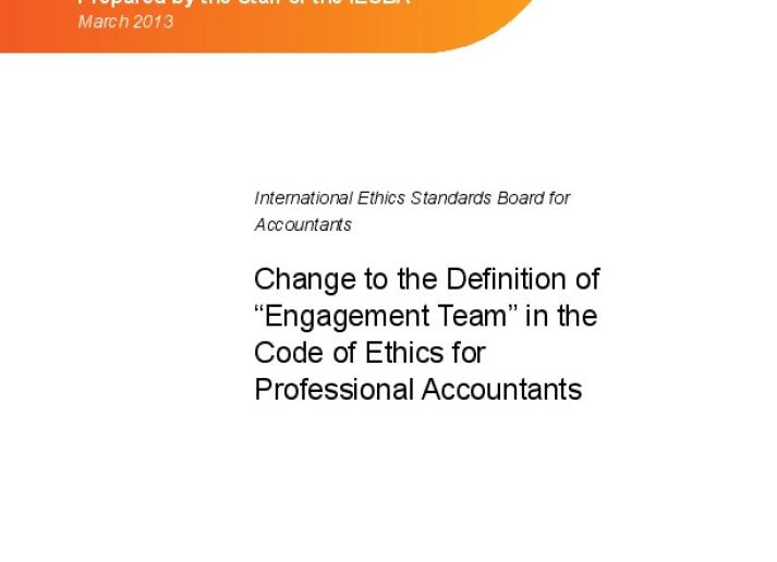 Basis for Conclusions: Change to the Definition of “Engagement Team” in the Code of Ethics for Professional Accountants Ethics International Standards March 19, 2013 • ethicsboard.org