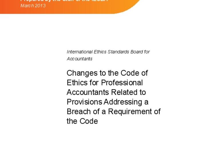Basis for Conclusions: Changes to the Code of Ethics for Professional Accountants Related to Provisions Addressing a Breach of a Requirement of the Code Ethics International Standards March 19, 2013 • ethicsboard.org