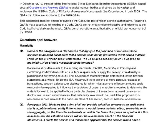 IESBA Staff Questions and Answers - Implementing the Code of Ethics—Part II Ethics International Standards November 7, 2012 • ethicsboard.org