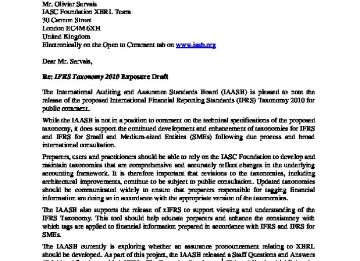 IAASB Comments on IFRS Taxonomy 2010 Exposure Draft Audit & Assurance International Standards March 31, 2010 • iaasb.org