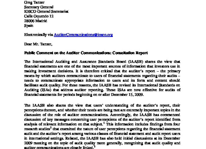 IAASB Comment on IOSCO Consultation Report: Auditor Communications Audit & Assurance International Standards December 31, 2009 • iaasb.org