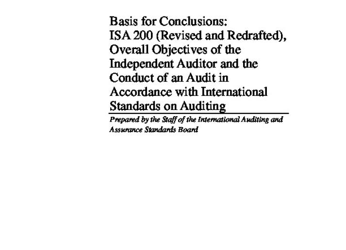 Basis for Conclusions: ISA 200 (Revised and Redrafted) Audit & Assurance International Standards October 1, 2008 • iaasb.org