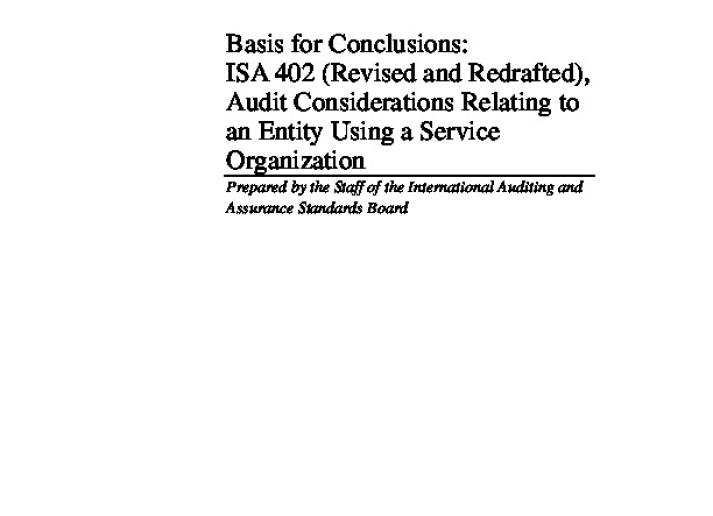Basis for Conclusions: ISA 402 (Revised and Redrafted), Audit Considerations Relating to an Entity Using a Service Organization Audit & Assurance International Standards March 1, 2009 • iaasb.org