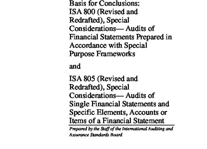 Basis for Conclusions: ISA 800, Special Considerations-Audits of Financial Statements Prepared in Accordance with Special Purpose Frameworks Audit & Assurance International Standards February 28, 2009 • iaasb.org
