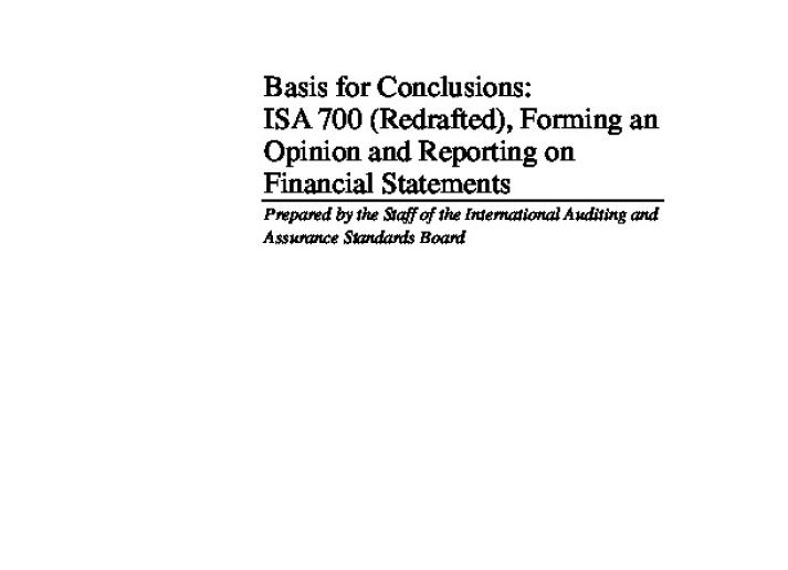 Basis for Conclusions: ISA 700, Forming an Opinion and Reporting on Financial Statements Audit & Assurance International Standards February 28, 2009 • iaasb.org