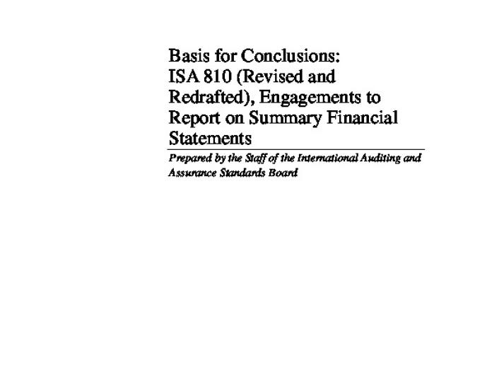 Basis for Conclusions: ISA 810, Engagements to Report on Summary Financial Statements Audit & Assurance International Standards February 28, 2009 • iaasb.org