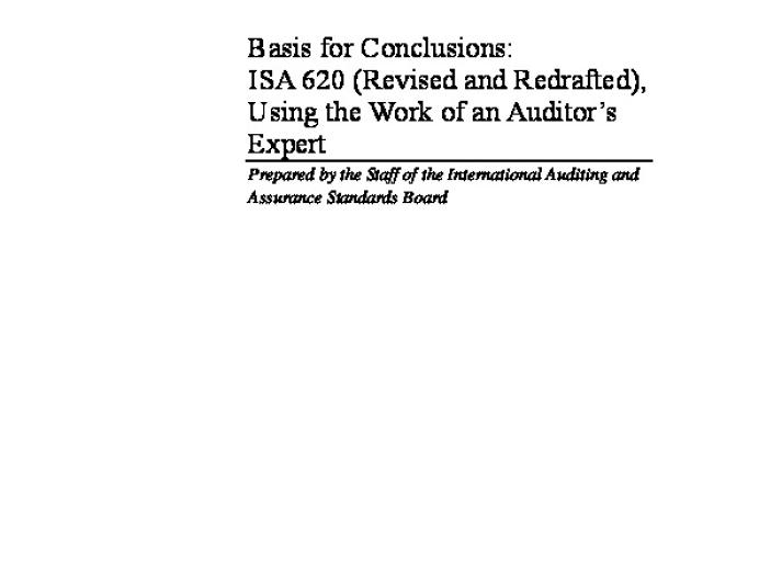 Basis for Conclusions: ISA 620 (Revised and Redrafted), Using the Work of an Auditor’s Expert Audit & Assurance International Standards December 1, 2008 • iaasb.org