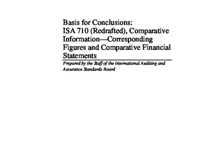 Basis for Conclusions: ISA 710, Comparative Information-Corresponding Figures and Comparative Financial Statements Audit & Assurance International Standards November 30, 2008 • iaasb.org