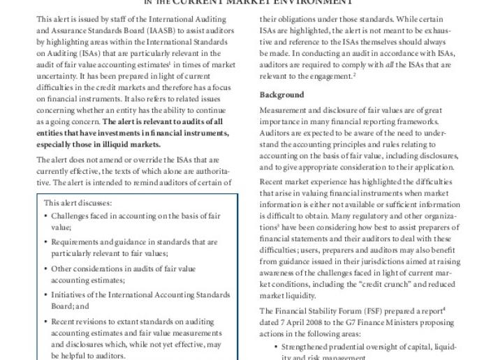 Staff Audit Practice Alert - Challenges in Auditing Fair Value Accounting Estimates in the Current Market Environment Audit & Assurance Ethics International Standards September 30, 2008 • iaasb.org