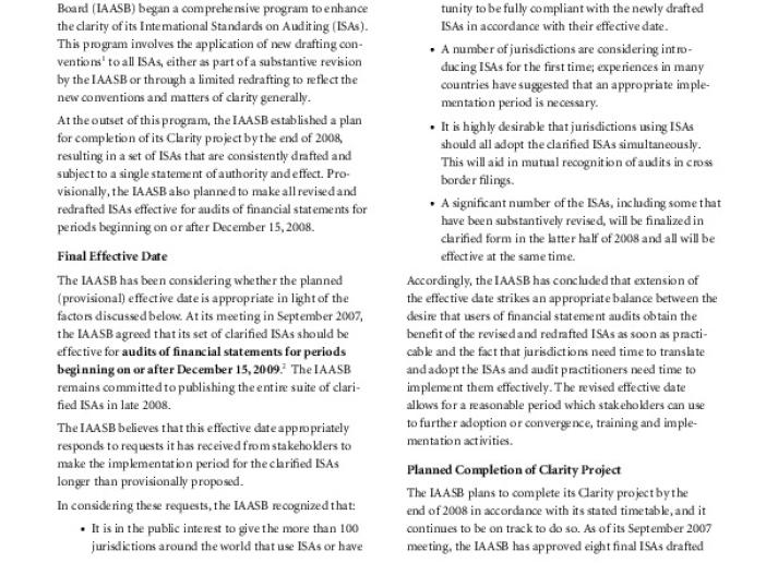 Effective Date for IAASB's Clarified International Standards on Auditing Audit & Assurance Ethics International Standards September 30, 2008 • iaasb.org