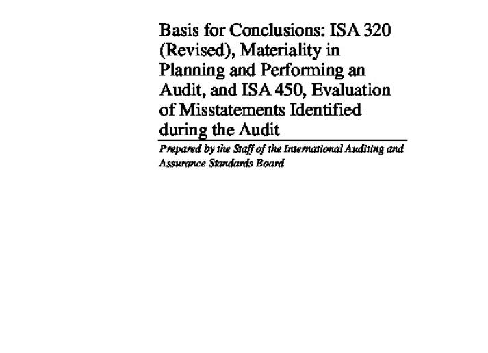 Basis for Conclusions: Close Off Documents of ISA 320 (Revised), Materiality in Planning and Performing an Audit and ISA 450 (Revised), Evaluation of Misstatements Identified during the Audit Audit & Assurance International Standards April 30, 2006 • iaasb.org