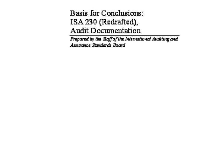 Basis for Conclusions: ISA 230, Audit Documentation Audit & Assurance International Standards September 30, 2005 • iaasb.org