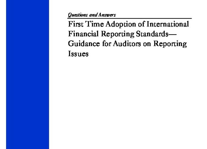 First Time Adoption of International Financial Reporting Standards - Guidance for Auditors on Reporting Issues Audit & Assurance Ethics International Standards July 31, 2004 • iaasb.org