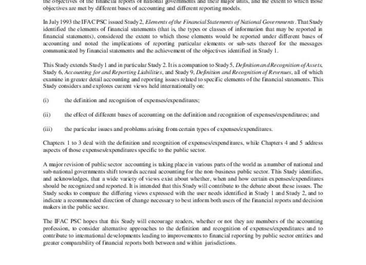 Study 10 - Definition and Recognition of Expenses/Expenditures Public Sector International Standards November 30, 1996 • ipsasb.org