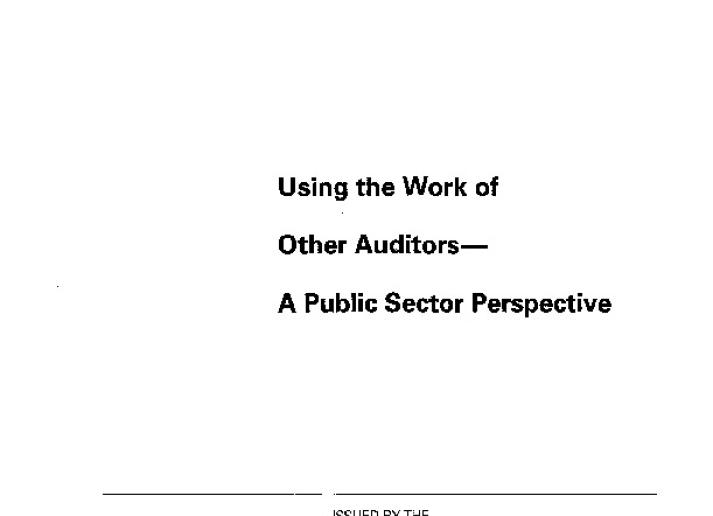 Study 4 - Using the Work of Other Auditors - A Public Sector Perspective Public Sector International Standards September 30, 1994 • ipsasb.org