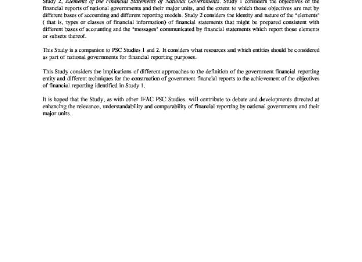Study 2 - Elements of the Financial Statements of National Governments Audit & Assurance Public Sector International Standards June 30, 1993 • ipsasb.org