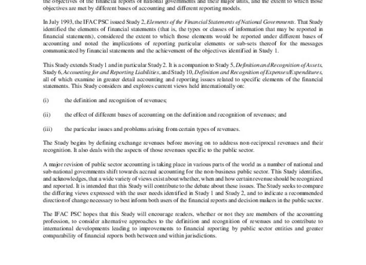 Study 9 - Definition and Recognition of Revenues Public Sector International Standards November 30, 1996 • ipsasb.org