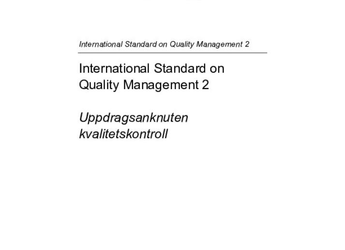 International Standard on Quality Management (ISQM) 2, Uppdragsanknuten kvalitetskontroll Audit & Assurance International Standards February 3, 2023 • iaasb.org