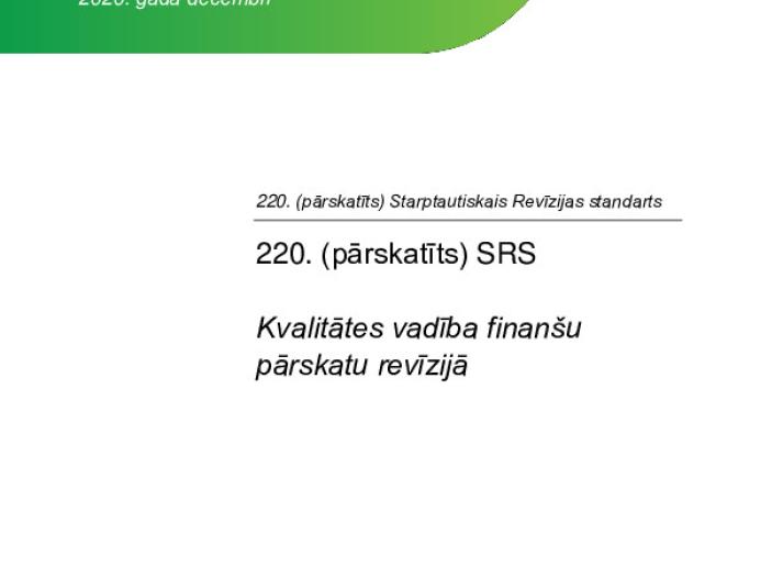 220. (pārskatīts) Starptautiskā Revīzijas standarta, Kvalitātes vadība finanšu pārskatu revīzijā International Standards January 31, 2023 • iaasb.org