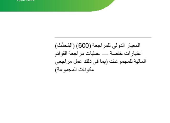 المعيار الدولي للمراجعة (600) (المُحدَّث) اعتبارات خاصة — عمليات مراجعة القوائم المالية للمجموعات (بما في ذلك عمل مراجعي مكونات المجموعة) Audit & Assurance International Standards January 31, 2023 • iaasb.org