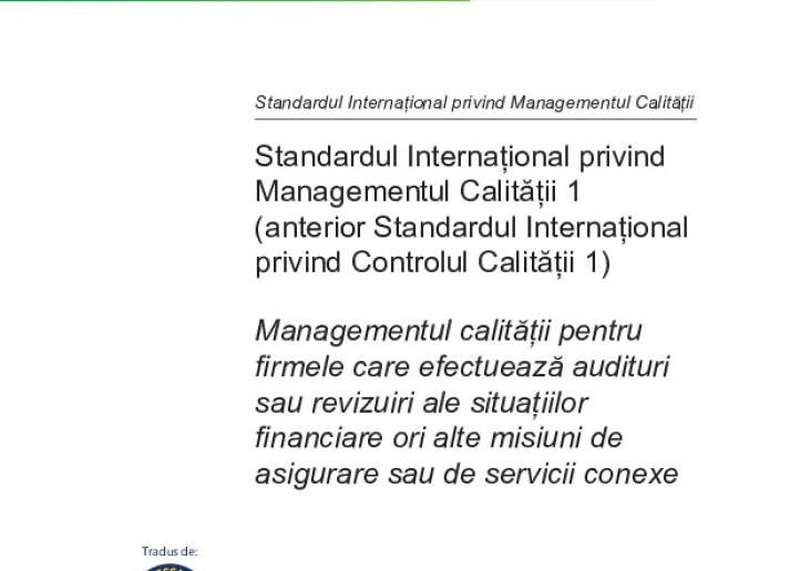 Standardului Internațional privind Managementul Calității 1: Managementul calității pentru firmele care efectuează audituri sau revizuiri ale situațiilor financiare ori alte misiuni de asigurare sau de servicii conexe Audit & Assurance Sustainable Organizations & Sustainability Transformation International Standards October 19, 2022 • iaasb.org