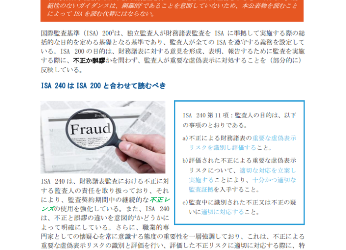 財務諸表監査における不正に関する規範性のないガイダンス「不正レンズ-ISA 240と他のISAとの相互関係」 Audit & Assurance International Standards September 29, 2022 • iaasb.org