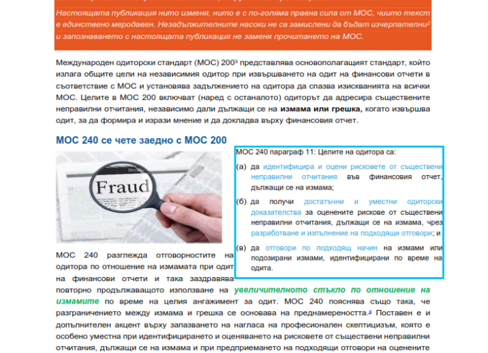 незадължителни насоки във връзка с измамите при одита на финансови отчети „Измамата под лупа – взаимодействие между МОС 240 и други МОС Audit & Assurance International Standards July 15, 2022 • iaasb.org
