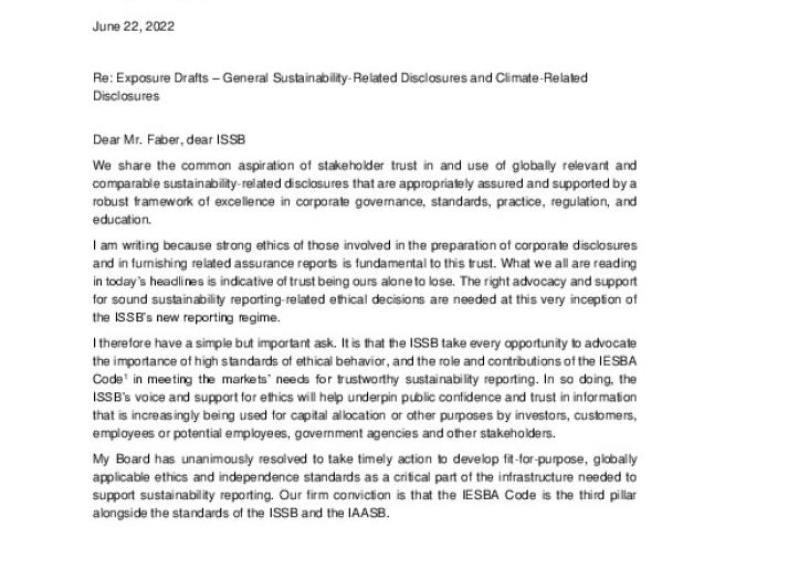 Letter from IESBA Chair to the International Sustainability Standards Board (ISSB) International Standards June 27, 2022 • ethicsboard.org