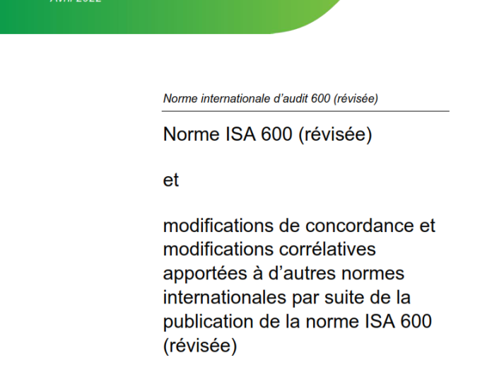 Norme ISA 600 (révisée) et modifications de concordance et modifications corrélatives apportées à d’autres normes internationales par suite de la publication de la norme ISA 600 (révisée) Audit & Assurance International Standards June 14, 2022 • iaasb.org