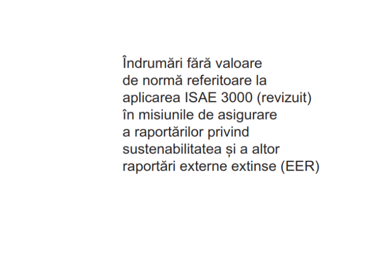 Îndrumări fără valoare de normă referitoare la aplicarea ISAE 3000 (Revizuit) în misiunile de asigurare a raportărilor privind sustenabilitatea și a altor raportări externe extinse (EER) Audit & Assurance Sustainable Organizations & Sustainability Transformation International Standards May 31, 2022 • iaasb.org