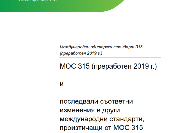 Международен одиторски стандарт 315 (преработен 2019): Идентифициране и оценяване на рисковете от съществени неправилни отчитания Audit & Assurance International Standards April 28, 2022 • iaasb.org